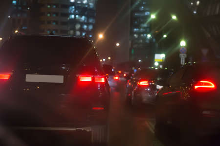 Cars on a city street in the evening. Traffic jam.
