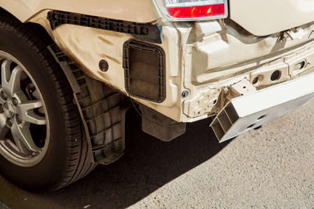 car accident, we need money to repair the car, a broken rear lamp taped with adhesive tape