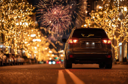 Blurred car with bokeh lights background. Abstract blur outdoor car for background. Blurred car exterior concept