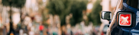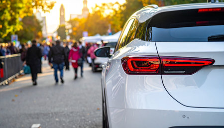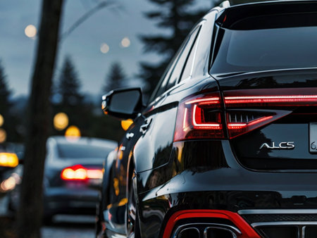 rear half with rear lights of a parked car on the side of the street, vehicle exterior details, closeup