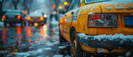 blurry winter night city street traffic