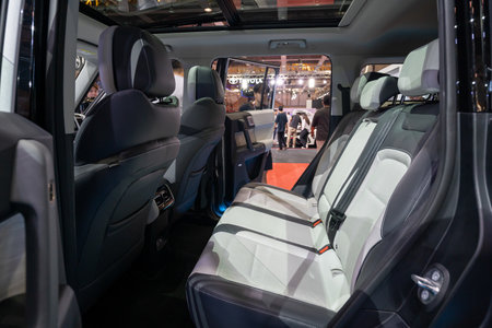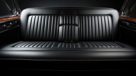 Luxury Black Leather Modern Car Interior. Coupe Vehicle Type Comfortable Back Seats. Automotive Theme.