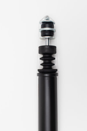 Black shock absorber for trucks on a white background with