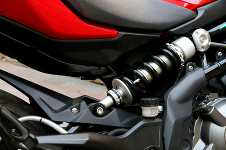 red shock absorber of motorbike