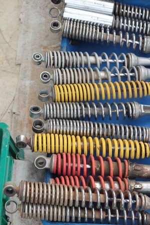 Old shock absorber of the small motorcycle.