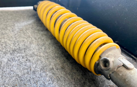closeup photo of motorcycle rear damping spring
