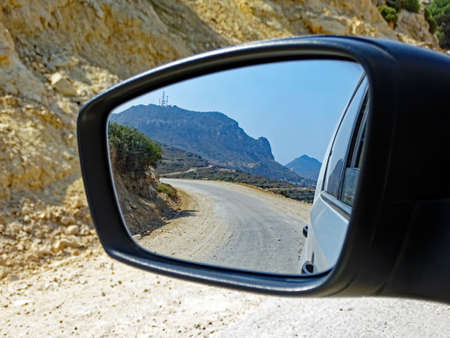 Inside car on Side view mirror for trip to travel or traffic jam at upcountry.