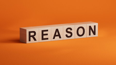 Reason symbol. Concept word Reason on wooden cubes.Business and Reason concept. Copy space.close up of wooden cubes,Business Concept.3D rendering on orange background.