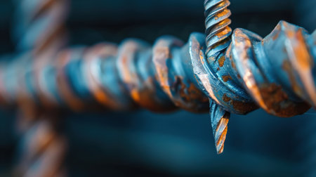 This image features a close-up view of rusty metal screws and bolts showcasing intricate twists and textures, perfect for industrial-themed projects.