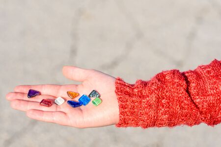 colorful paint paint spreads on the surface of small stones close-up, macro
