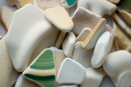 Close-up of microplastic particles background. Environmental water pollution problem of rubbish and trash in the oceans and seas