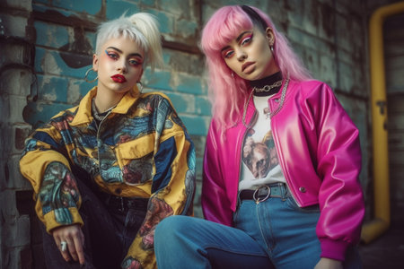 90s, hipsters Memphis style, 1990s, Retro music party, Funky, retrowave, cassette time, tape recorder neon, Fashion street style, bright looks, imported clothing, evocative style.