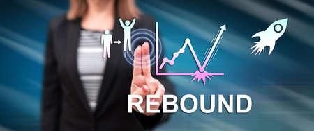 Woman touching a rebound concept on a touch screen with her fingers