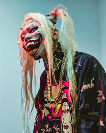 portrait of female rapper, zombie robot.