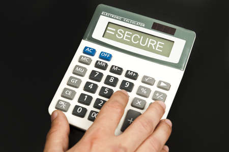 Focus the tax button on the calculator. Concept of calculation and annual tax refund.