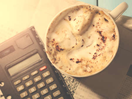 Close up of old Indonesian money rupiah coins on a calculator button, selected focus