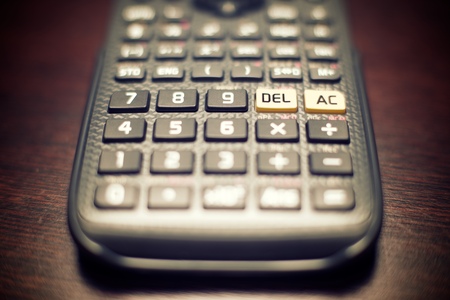 A detail of scientific calculator with sinus, cosinus, tangens, inverse, sum functions.