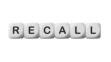 Recall written on wooden dice on wooden background.close up of wooden dice,Business Concept.Supports PNG files with transparent backgrounds.