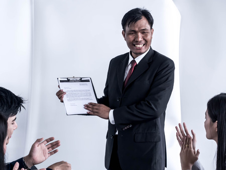 Businessman send cash money to the officer to sign in the contact for win the business job.