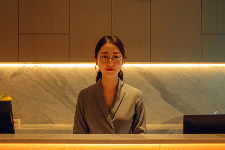 Elegant Japanese Receptionist in Luxury Hotel