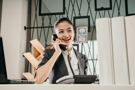 Exquisite Asian Businesswoman Skillfully Utilizing Telephone - AR 3:2