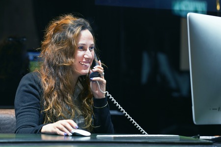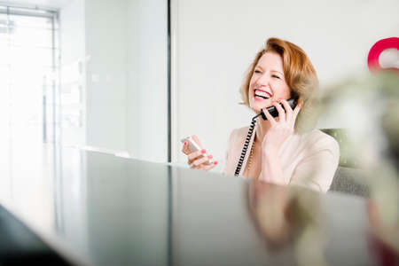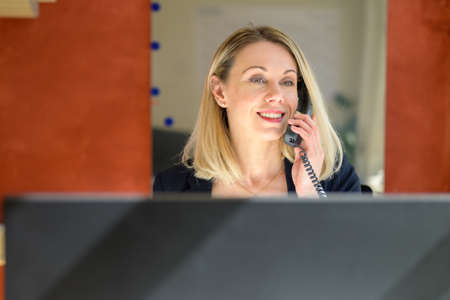 Receptionist on landline telephone