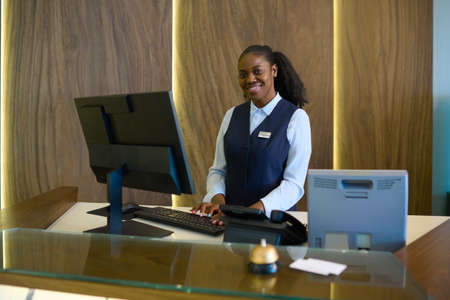 Female receptionist working in hotel