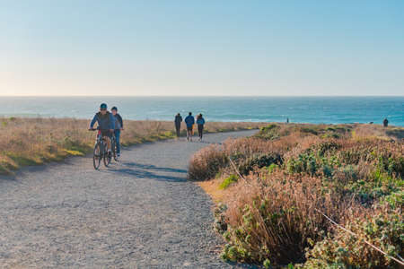 Montana de Oro, California, USA - March 6, 2021. Montana de Oro State Park Bluff trail, hike with amazing coastal views. Trail is good for hiking, running, biking, nature and birds watching