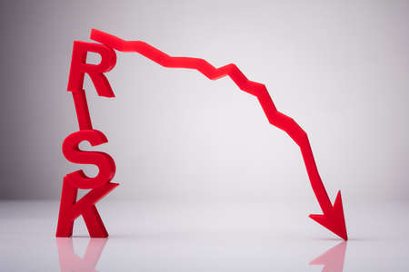Red Risk Word With Declining Arrow On Reflective Background