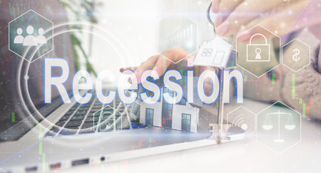virtual icon with the word recession