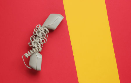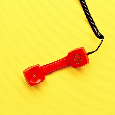 Telephone handset. phone receiver isolated on color background. old communication technology. copy space
