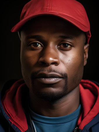Portrait of a young african american man in red cap.