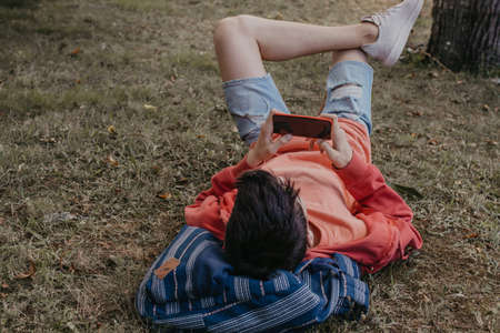 young or teenage student lying in the field