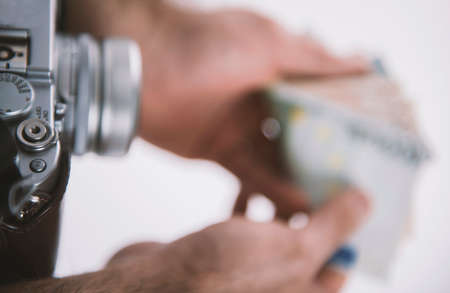 Photographer earning money with his work - concept.