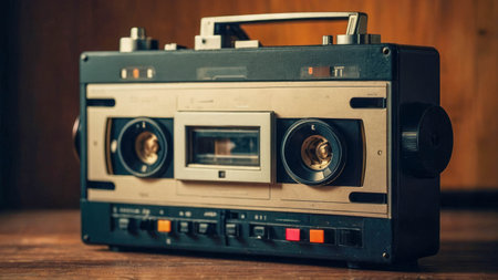Vintage radio cassette recorder. Retro style music