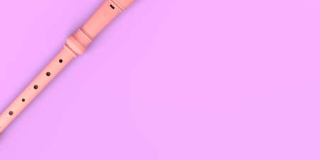 Flute on pink background. Copy space. 3D illustration.