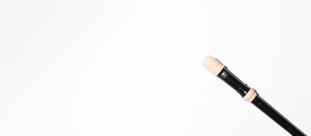 Black musical flute close up on white background, top view