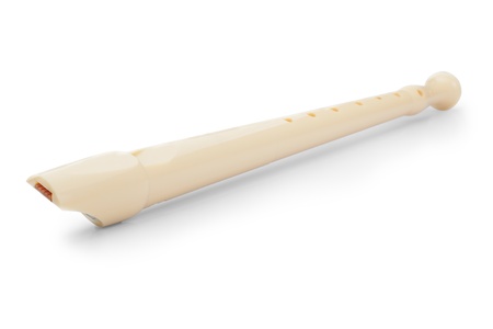 Recorder flute, musical instrument, cut out isolated on white