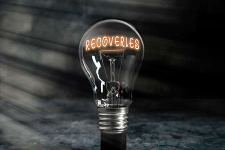 Handwriting text writing Recoveries. Conceptual photo process of regaining possession or control of something lost Realistic colored vintage light bulbs, idea sign solution thinking concept