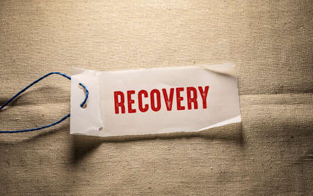 Recovery text on a piece of paper on a burlap background