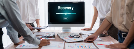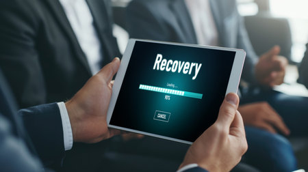 Writing note showing Recoveries. Business concept for process of regaining possession or control of something lost Web search digital information futuristic technology network connection