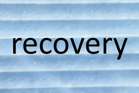 black word recovery lettering illustration on blue background