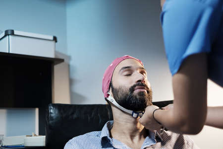Young Adult Man With Medical Staff Performing an EEG