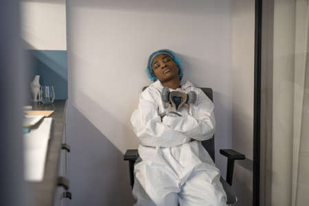 Doctor sitting at the chair and sleeping while having night shift