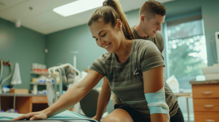 A person stretching with the help of a the after a session of cold therapy
