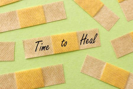 Adhesive bandage plasters and the text time to heal
