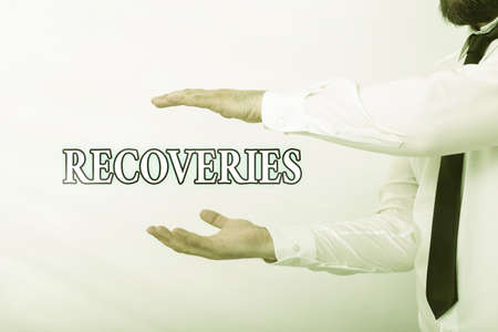 Writing note showing Recoveries. Business concept for process of regaining possession or control of something lost