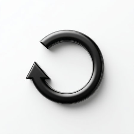 This image features a sleek black circular arrow icon, symbolizing refresh or reload actions, set against a clean white background, ideal for digital applications.