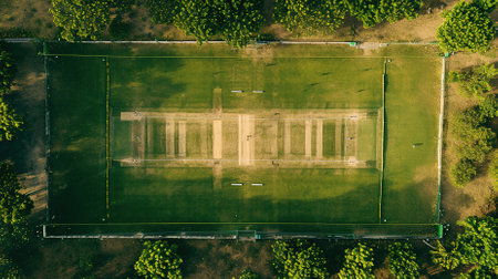 Bird eye soccer pitch. Aerial top view of green football playground. Generate ai