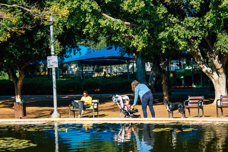 Tel Aviv Israel December 25, 2019 View of the Charles Clore Park in Tel Aviv one afternoon in winter